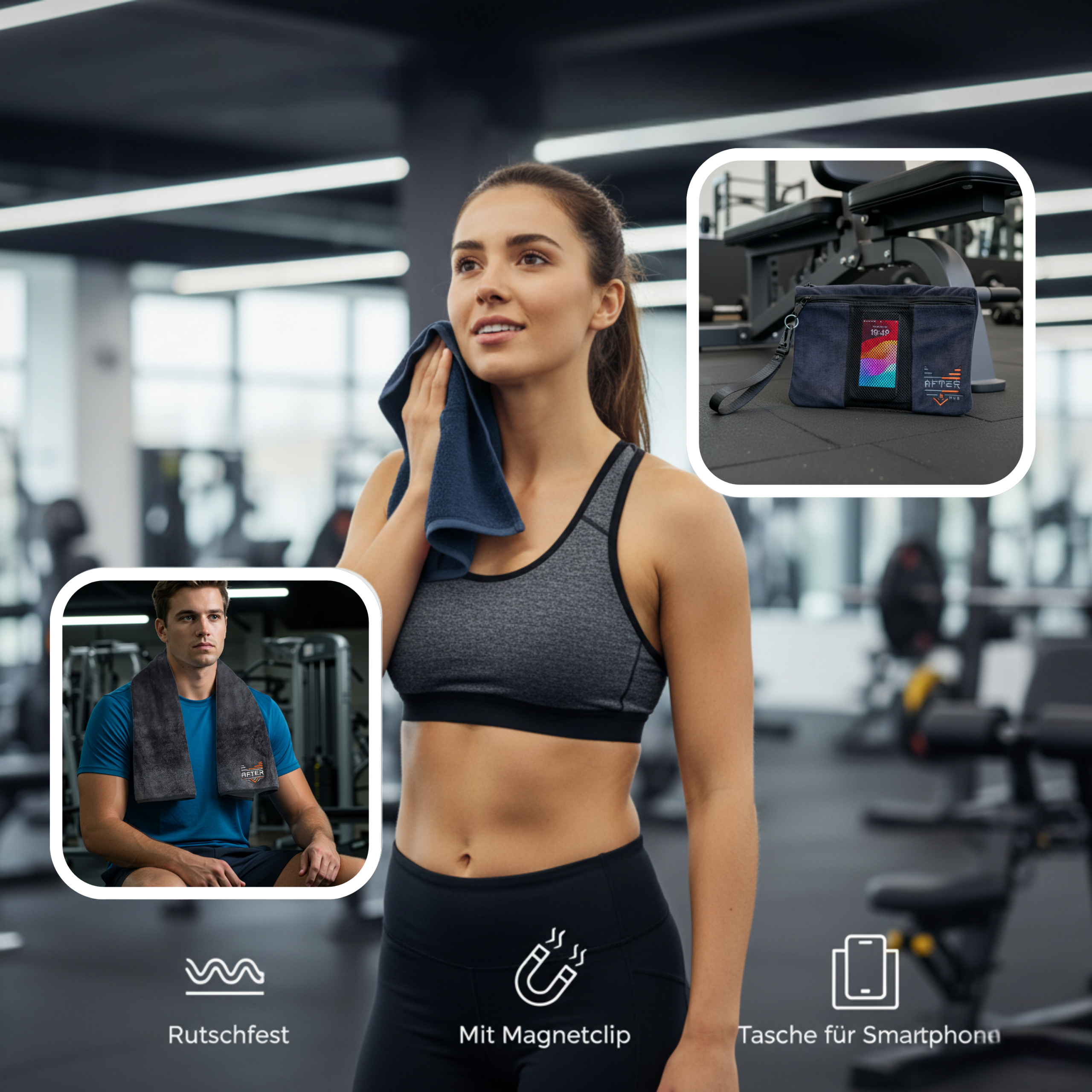 Das Fitness Handtuch mit Tasche, das mehr kann.